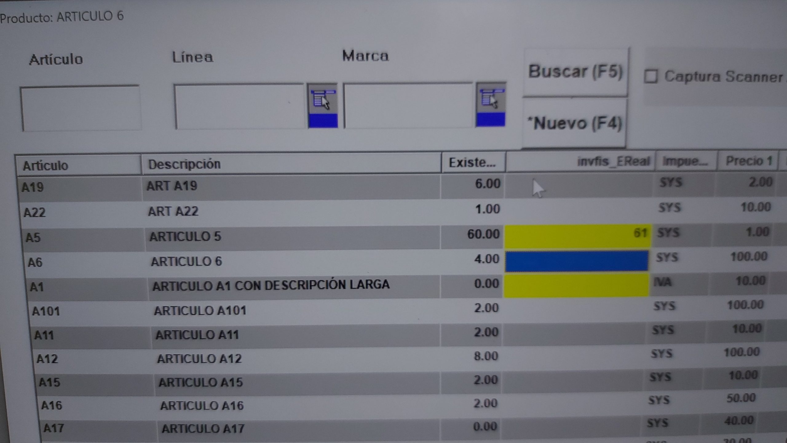 Agrega y actualiza artículos en una ventana similar a excel.