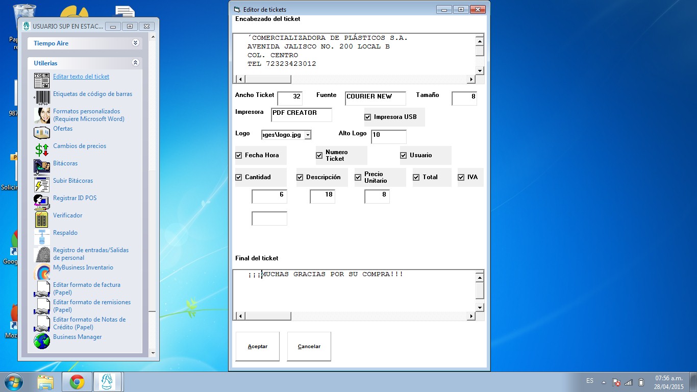 Editor de Corte Z para personalizar la impresión del cierre de día.